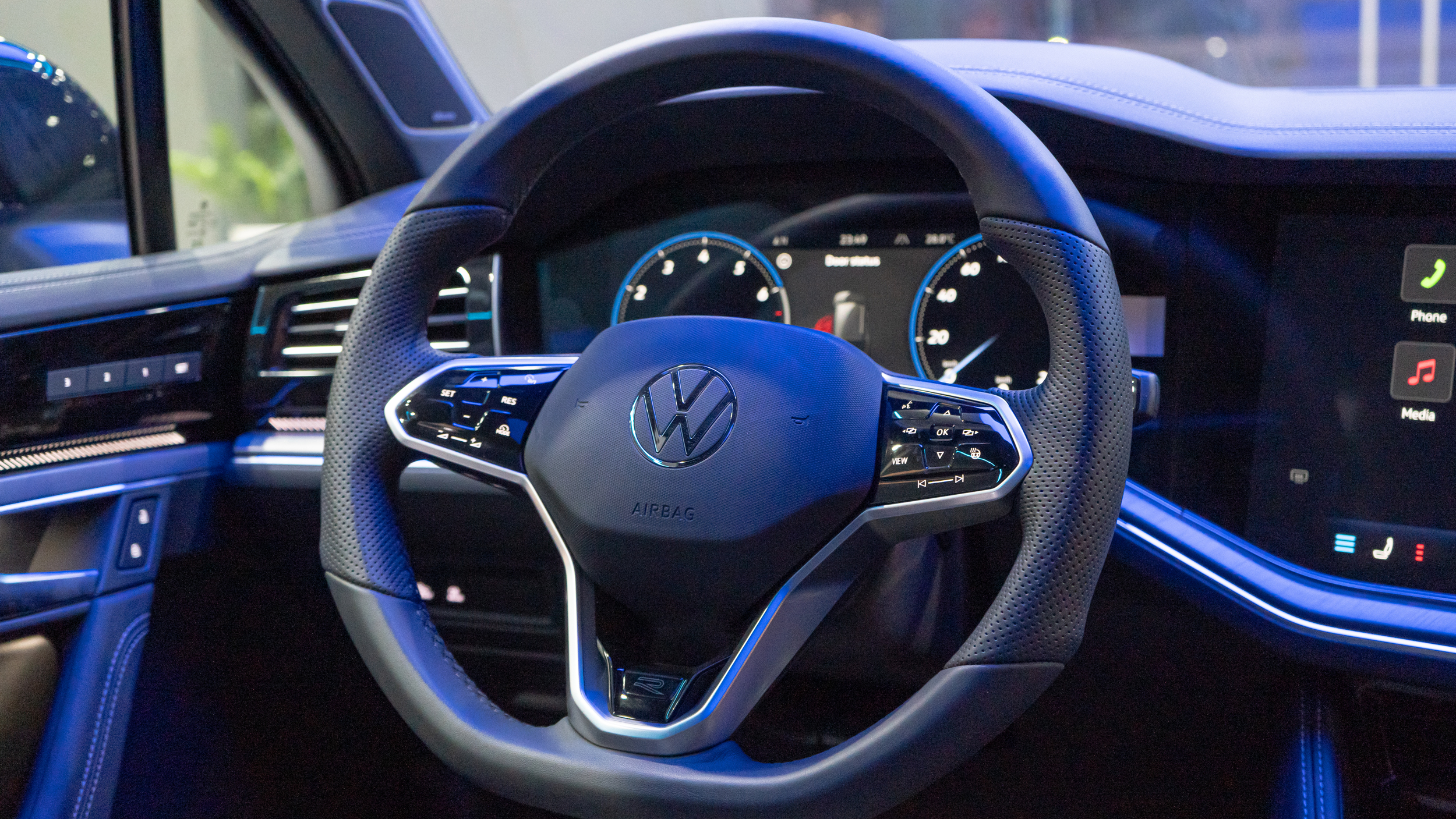 Về âm thanh, Touareg trang bị 8 loa tiêu chuẩn trên bản Elegance và Elegance Plus, trong khi bản Luxury R-Line sở hữu dàn 14 loa Dynaudio 730W, mang đến âm thanh vòm 7.1 sống động như trong rạp chiếu phim.